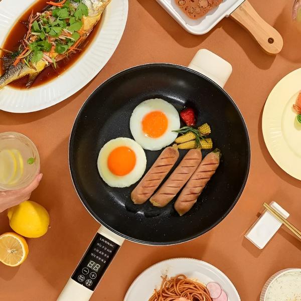 Ta električna ponev vam omogoča pripravo bogatih obrokov, ne da bi potrebovali štedilnik, kar je idealno za vsak prostor.