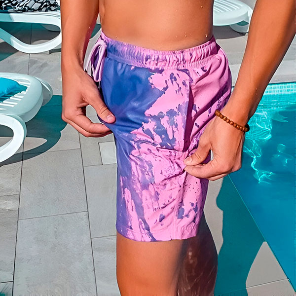 Te kopalne hlače takoj spremenijo barvo, ko so mokre ali ob dotiku—vsako plavanje naredijo bolj zabavno in nepozabno.