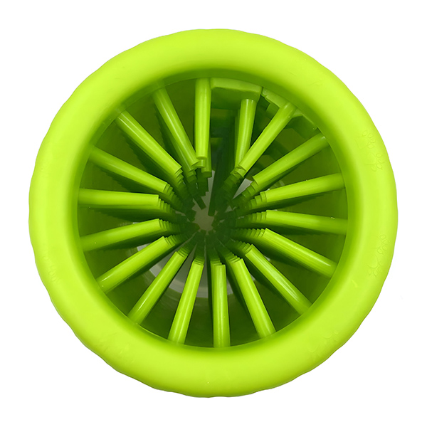 Valjasta oblika vam omogoča učinkovito umivanje težko dostopnih predelov. Preprosto vstavite pasjo tačko, jo zavrtite in pustite, da silikonske ščetine odstranijo umazanijo in nečistoče. Uživajte v brezhibnem domu brez nepotrebnih težav.