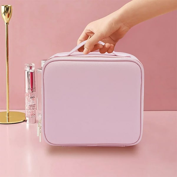 Naša torbica za shranjevanje ličil z ogledalom se zaradi svoje elegantne in lahke zasnove zlahka spravi v kovček ali torbo, tako da lahko s seboj povsod nosite ličila.