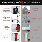 Zasnovana z ergonomijo v mislih, prenosna črpalka zmanjšuje napor, omogoča uporabo z eno roko in odpravlja potrebo po dvigovanju težkih predmetov.