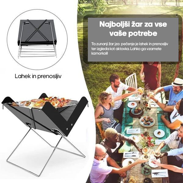 Ste se naveličali velikih, okornih žarov? Ta prenosni žar je lahek in ima elegantno, zložljivo obliko. GRILLOMAT je tako enostaven za prenašanje kot za shranjevanje. Brez težav ga spravite v avtomobilski prtljažnik, v opremo za kampiranje ali celo pod roko, s čimer si zagotovite, da vas odlični okusi spremljajo kamorkoli greste.