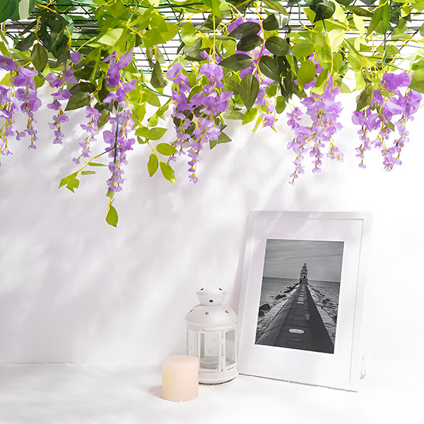 Želite ustvariti impresivne cvetlične aranžmaje? Svetlo vijolična glicinija WISBLOOM z bujnimi zelenimi listi je kot nalašč za okrasitev obokov, rešetk, sten, izložb, restavracij, pisarn, zabav in še veliko več. Te rože, ki so odporne na UV-žarke in imajo dolgo življenjsko dobo, lahko uporabljate v zaprtih prostorih ali na prostem, saj dodajo živahen pridih vsakemu aranžmaju.