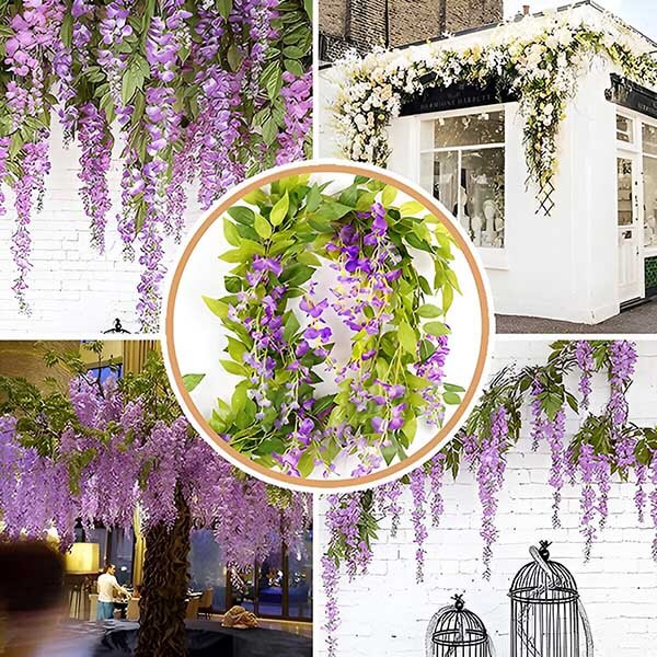 Ste utrujeni od vzdrževanja pravega cvetja, ki ovene in zbledi? WISBLOOM je imitacija cvetov glicinije z listi bršljana, ki v vaš prostor brez težav vnese pridih naravne lepote. Te živahne, realistične viseče rože ostanejo sveže in barvite vde leto, kar zagotavlja da bo vaš vrt ali dom vedno videti osupljivo.