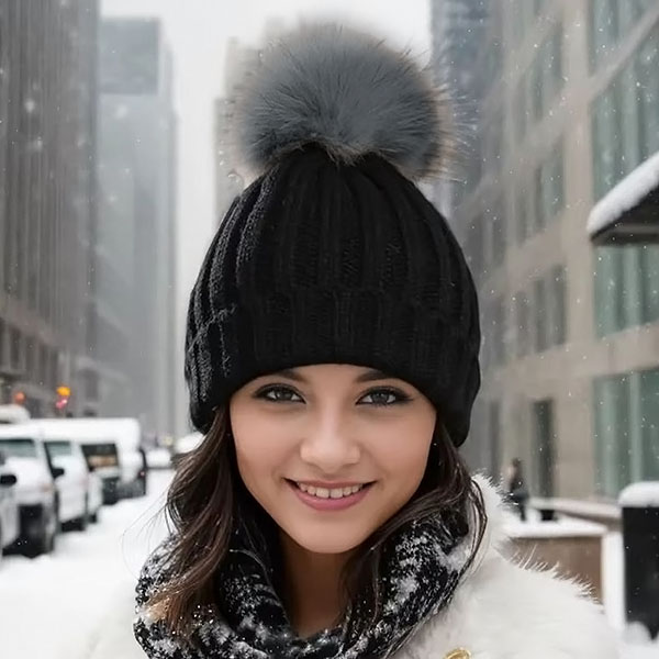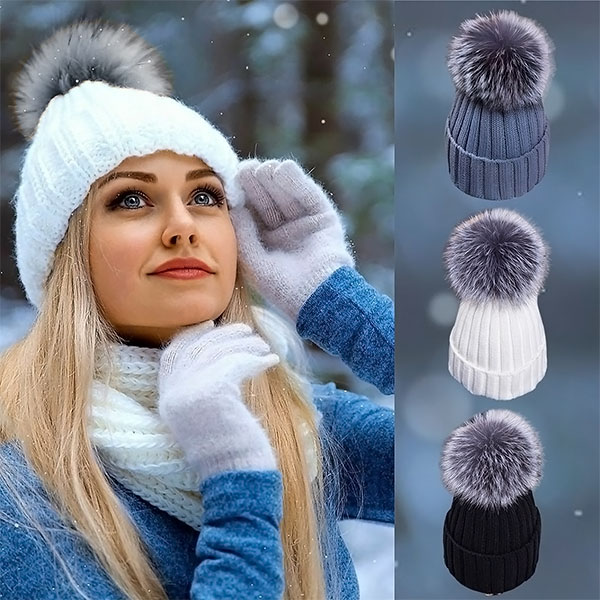 Topla pletena kapa s cofkom | GLACIA